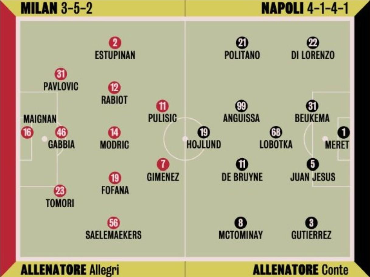 梅雷特;迪洛伦佐、比克马、胡安-热苏斯、米格尔-古铁雷斯;洛博特卡;波利塔诺、安古伊萨、德布劳内、麦克托米奈;